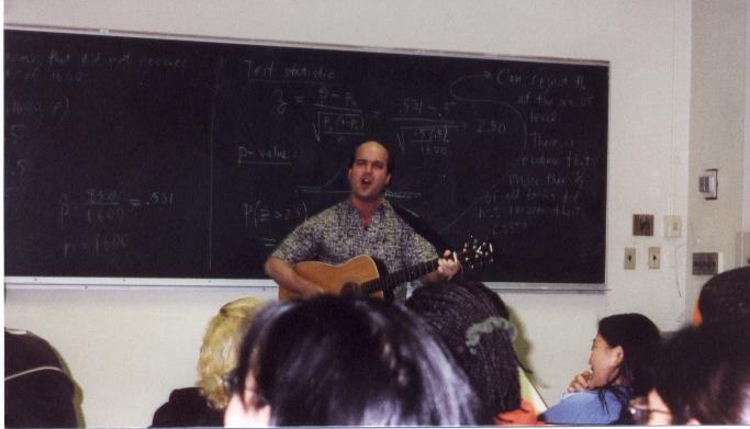 - Singing "Statisfaction" on the last day of classes, December 1998
